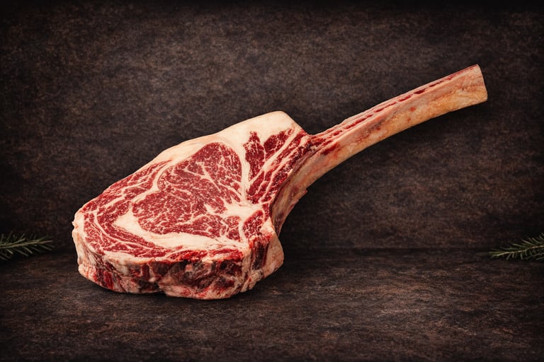 Taglio scenografico, osso lungo e carne ricca di struttura.